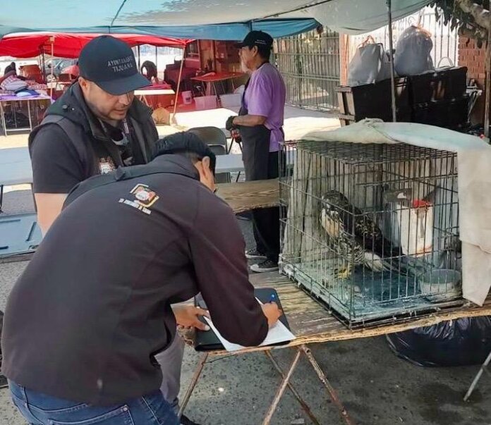 En otro caso distinto, José Antonio Olivas, informó que tras recorridos de verificación en un mercado sobre ruedas ubicado en las inmediaciones de la colonia Hidalgo, inspectores a su cargo se percataron de la venta ilegal de un ave exótica, localizada al interior de una jaula.
