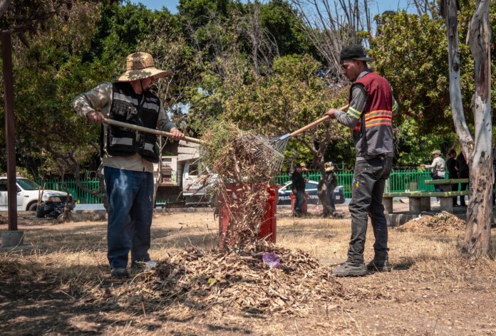 Posteriormente, en la Delegación Centro, el parque Los Pinos, ubicado en Prolongación Paseo de los Héroes, fue intervenido con labores de mantenimiento y limpieza para rehabilitar este espacio público y ofrecer un entorno más seguro y agradable a las familias, incluyendo estudiantes de tres instituciones educativas cercanas.