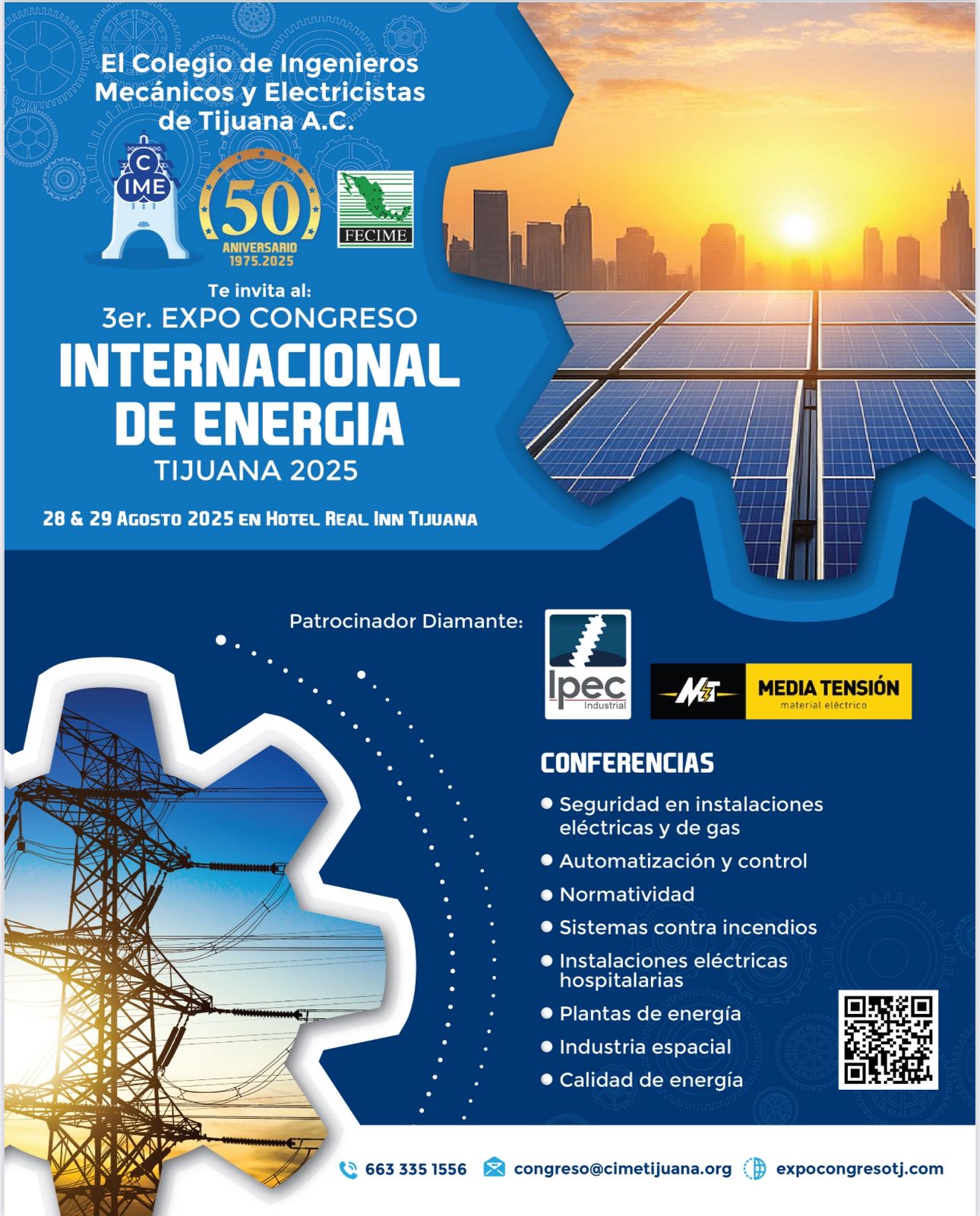 En el marco de su 50 aniversario, el Colegio de Ingenieros Mecánicos y Electricistas de Tijuana llevará a cabo el Tercer Expo Congreso Internacional en Energía 2025, los días 28 y 29 de agosto en el hotel Real Inn.