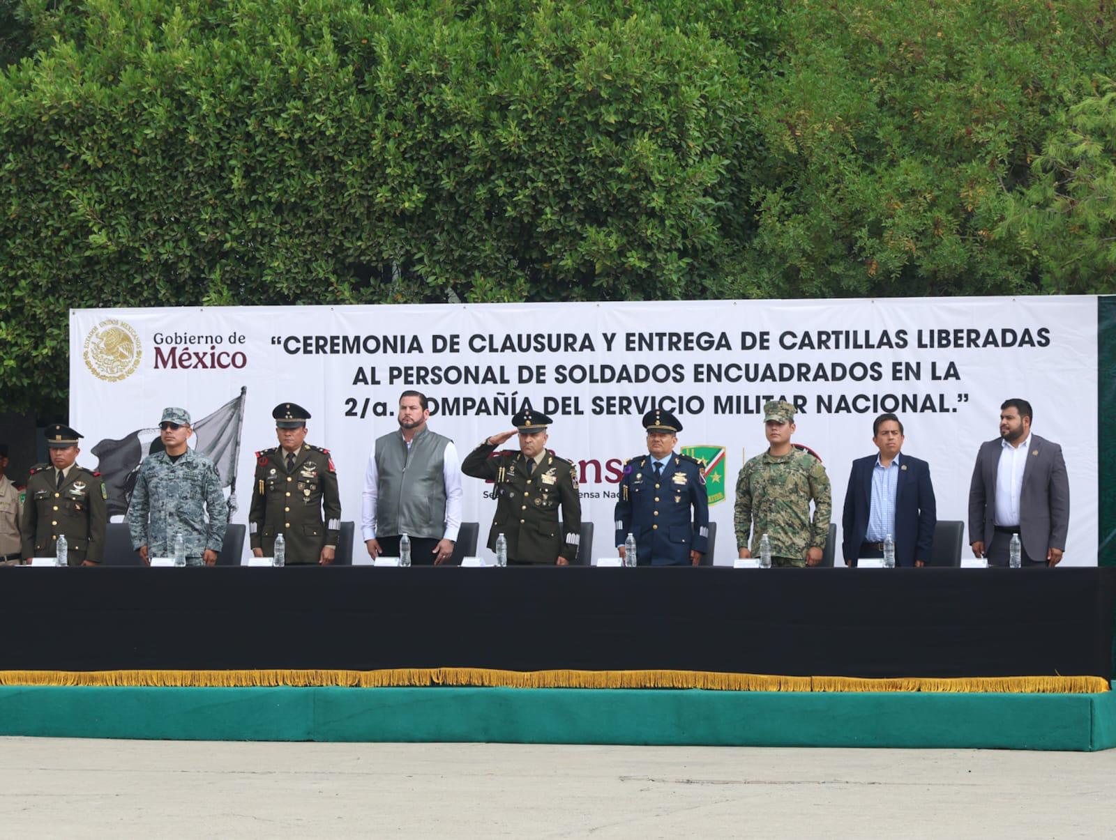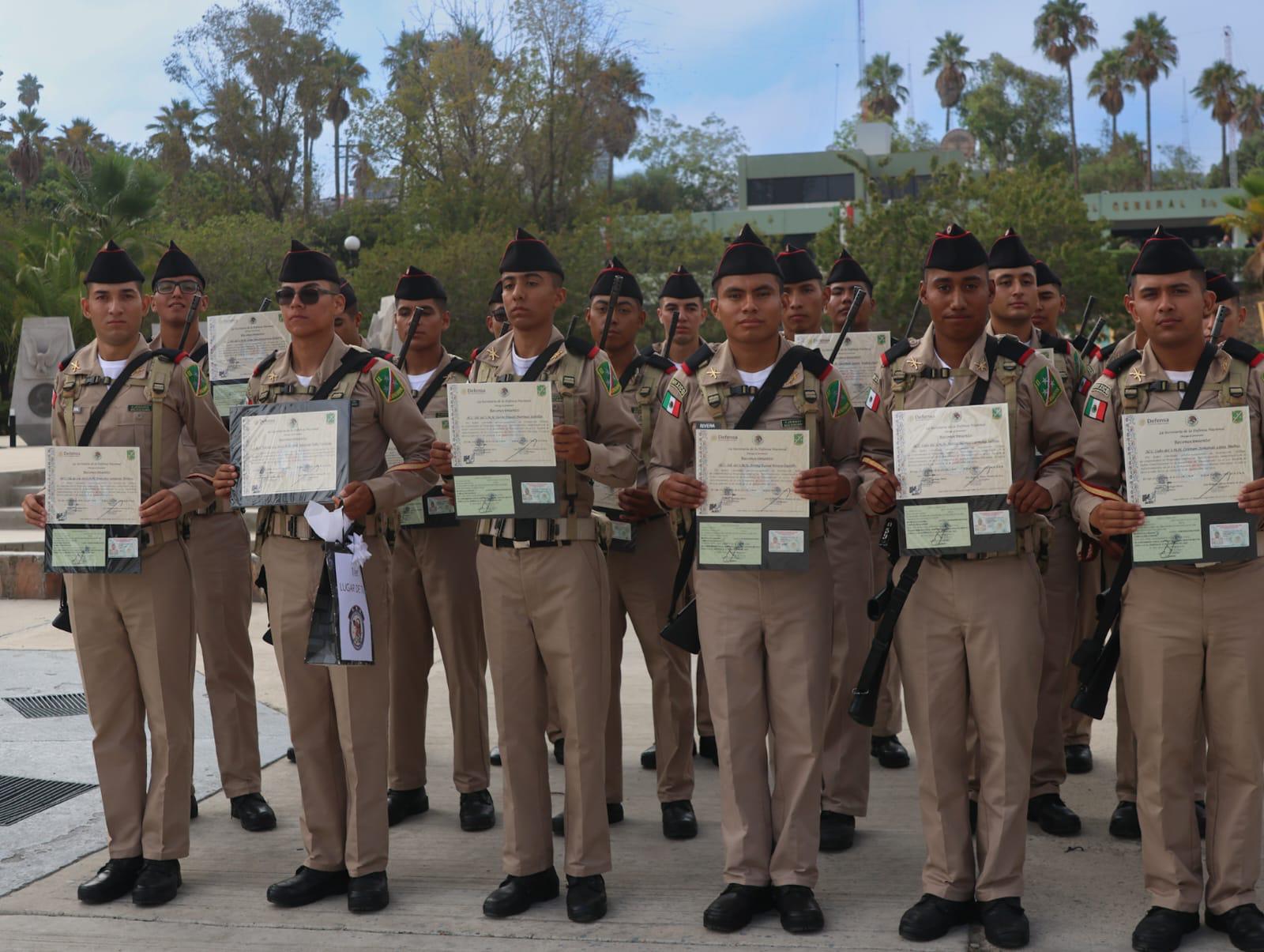 En la entrega de cartillas liberadas a los 103 jóvenes de Baja California, Baja California Sur y Sonora, estados que conforman la Segunda Compañía Militar Nacional, las autoridades presentes los felicitaron por su compromiso cívico y patriótico.