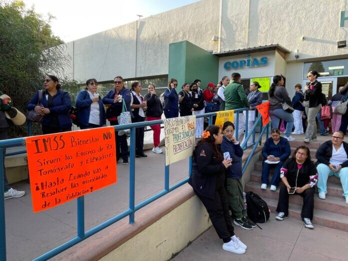 Personal sindicalizado de la Secretaría de Salud en Tijuana, Tecate y Rosarito se mantiene en asamblea permanente para exigir el cumplimiento de diversas prestaciones laborales que no han sido cubiertas desde la transición del sistema estatal al programa federal IMSS Bienestar.